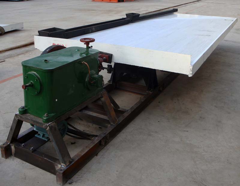 搖床選礦是在一個(gè)傾斜的床面上借助機(jī)械石板對(duì)稱往復(fù)運(yùn)動(dòng)和薄層斜面水流等聯(lián)合作用,使礦粒在床面上松散分層,分帶,從而使礦物按密度不同來進(jìn)行分選的過程。