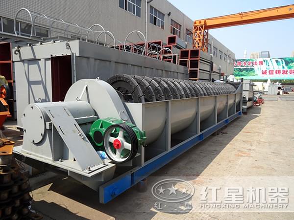 借助固體顆粒的比重不同而在液體中沉淀的速度不同的原理,利用螺旋分級機(jī)對礦石混合物進(jìn)行洗凈和分級;